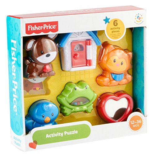 -. Binding : Toy -. Brand : Fisher-Price -. EAN : 0885378279070 -. Feature : 6 piece puzzle that is a great addition to the Brilliant Basics line / All 6 activities help improve dexterity and develop matching skills / Puzzle features fun elements under each piece / Helps develop fine motor skills and eye-hand coordination / Provides baby with sensory stimulation -. IsAdultProduct : 0 -. ItemPartNumber : W9839 -. Label : Fisher Price -. Manufacturer : Fisher Price -. Model : W9839 -. MPN : W9839 -. NumberOfItems : 1 -. PackageQuantity : 1 -. PartNumber : W9839 -. ProductGroup : Toy -. ProductTypeName : TOYS_AND_GAMES -. Publisher : Fisher Price -. ReleaseDate : 2013-07-28 -. Studio : Fisher Price -. Title : Fisher-Price Brilliant Basics Activity Puzzle -. UPC : 885173221694 -. Warranty : No Warranty Which one goes where? A matching puzzle full of busy activities is a great way to boost baby's developing skills! This puzzle has big, chunky pieces that are easy to hold and great for eye-hand coordination. Fitting the pieces in helps baby learn about matching colors and shapes while fostering problem-solving skills. And all the colorful detail, fun sounds and interesting textures enhance sensory development. 12-36 mos