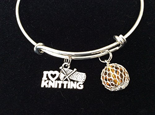 -. Title : I Love Knitting Silver Expandable Charm Bracelet