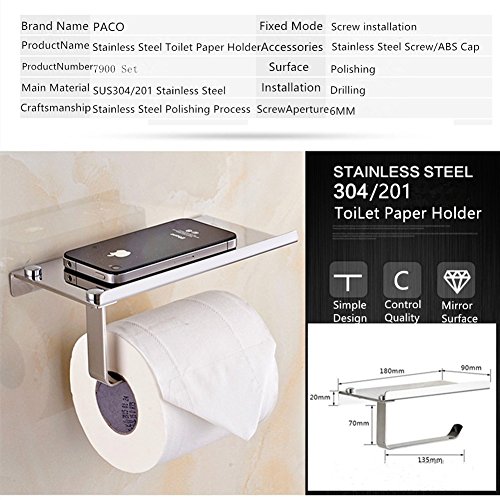 Toilet Paper Holder for Bathroom,Wall Mount Stainless Steel Holder with Mobile Phone Storage Shelf