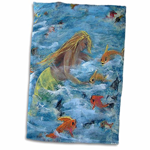 3D Rose Sea Angels-Mermaids Feed the Fish Hand/Sports Towel, 15 x 22"