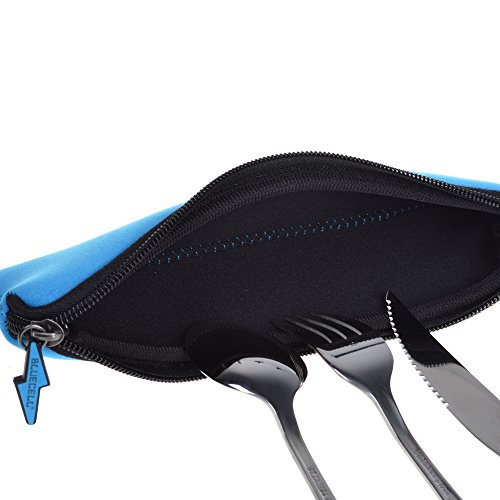 BCP Portable Washable Travel Cutlery Kit Neoprene Case( Not included cutlery) bone Style Tableware Bag with Zipper-Blue Color