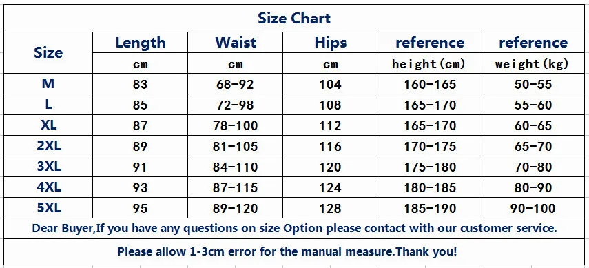 Waist Size(in inches):68-120