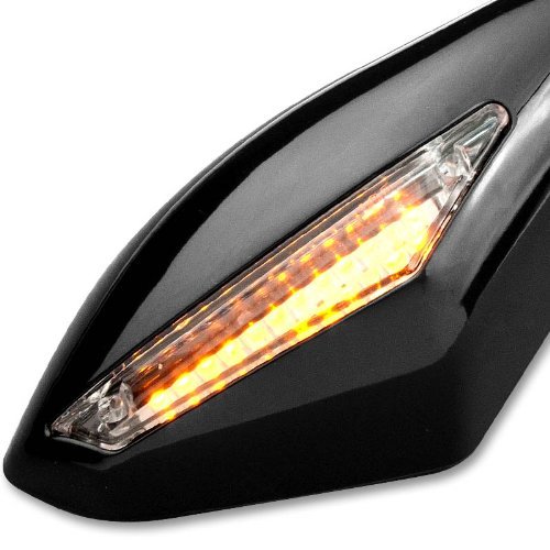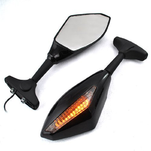 ??Package Included: Set of Two Side Mirrors(Left and Right) ??5 pieces adaptor bolts (2 x 8mm (M8) clockwise bolt, 2 x 10mm (M10) clockwise bolts, 1 x 10mm (M10) Counter-Clockwise (Reverse) bolt) ??Material: ABS plastic Mirror Housing ??Mirror Size: Length 5 1/2 inches x Width 3 1/2 inches (14 cm X 8.8 cm) ??Size: Total Length 10 1/2 inches (26.6 cm) ??LED Color: Amber