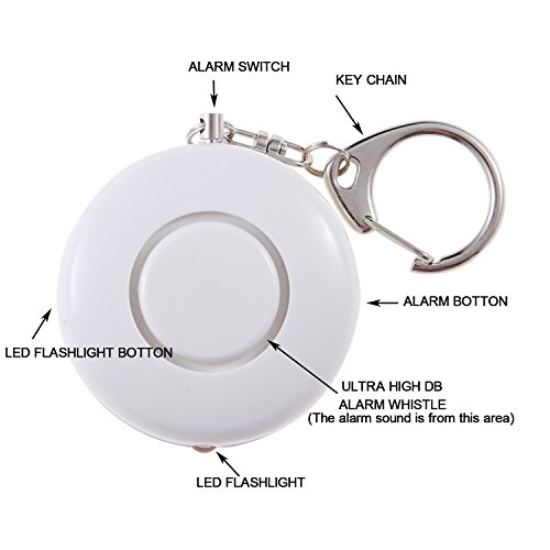 Guard 130dB personal Siren song alarm with LED flashlight and keychain,Loudest survival whistle for Jogger/elder/kids/women emergency,Anti-theft/attack/rape, bag decoration , perfect gift,White