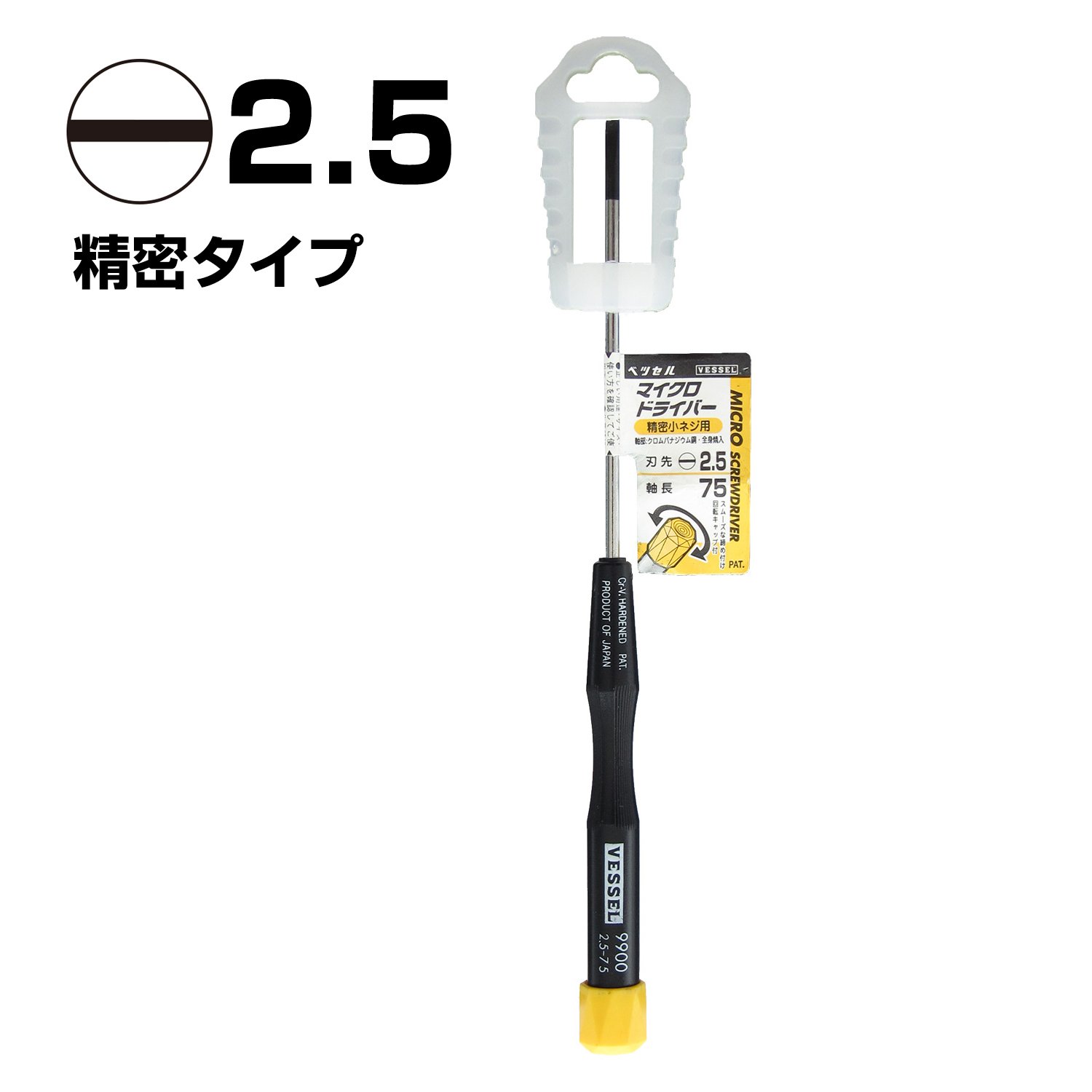 ● Edge: [[(-)]] 2.5 ● Axis length (mm): 75 ● Total length (mm): 170