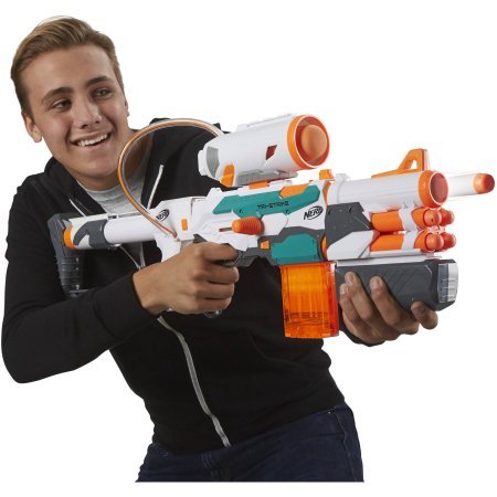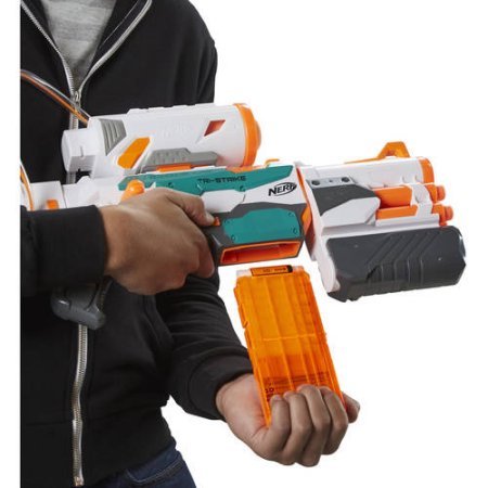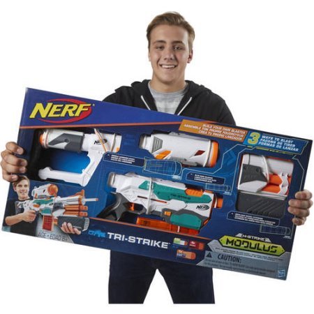 -. Binding : Toy -. Brand : Nerf -. Color : Multicolor -. EAN : 7103485727714 -. Feature : Color:Multicolor Gender:Boys, Girls / Age Range:8 to 11 Years, 12 to 14 Years Manufacturer Part Number :B5577 / Model:B5577 Brand:Nerf / 3 ways to blast / Elite blaster creates a base to add all of the Tri-Strike components -. IsAdultProduct : 0 -. Label : Ne rf -. Manufacturer : Ne rf -. MPN : B5577 -. PackageQuantity : 1 -. PartNumber : B5577 -. ProductGroup : Toy -. ProductTypeName : TOYS_AND_GAMES -. Publisher : Ne rf -. Size : 3.2 x 30 x 15 inches -. Studio : Ne rf -. Title : Nerf Modulus Tri-Strike comes with 3 ways to blast