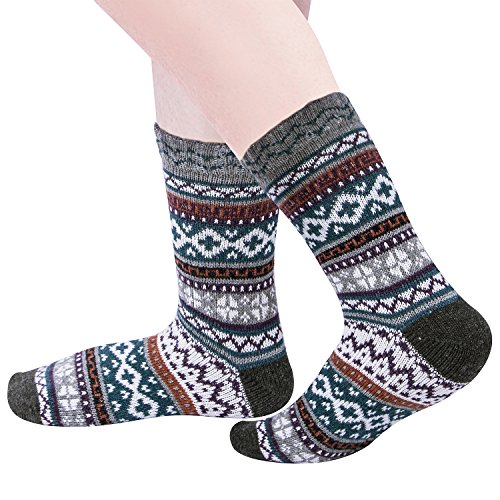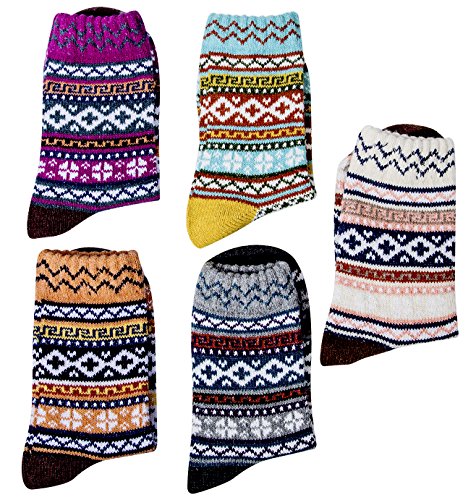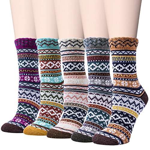 -. Feature : Material: Womens winter socks made of warm wool. Soft, comfortable, breathable, wearable, moisture-wicking and odor-fighting. / Size: Our wool socks are free size 23 to 25cm, suitable for women US shoe size 5 to 9, They are elastic and perfectly make it suitable for your feet. / Design: Vintage and trendy design warm socks that will coordinate with whatever you're wearing. Brighten up those cold winter mornings with these snly socks to keep your toes warm. / Application: A mix of bright P.R.Ints makes these colorful socks cool and fun, It's a great gift in winter for family members, friends and anyone you love. Come with 5 pairs thick knitting cotton socks, various colors can easily follow your daily collocation. / Risk Free Guarantee: Your purchase is fully protected when you order today. If you are not satisfied with your vintage cotton socks, contact us any time, we will get you back within 24 hours try our best to make things right!