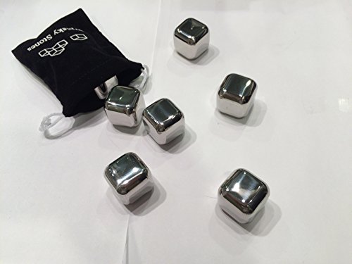 -. Title : C-Spin 6 Pieces Stainless Steel Whisky Stone Ice Cube Cubes w Velvet Bag Glacier Rocks Chillers Cooler Whiskey Stones