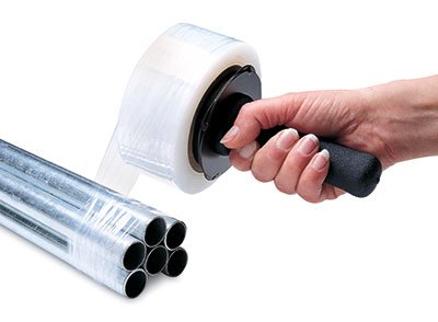 -. Feature : Less expensive than premium stretch wrap, tape, string, or strapping. / Quiet release. / Self-clinging to quickly secure bundled items. / Core is 3" wide. / Order includes FREE economy handle