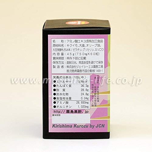 主要成分(サプリメント・化粧品):エネルギー504kcal、タンパク質36.3g、脂質28.8g、炭水化物24.8g、食塩相当量0.04g アミノ酸28,930mg、オルニチン1,020mg(100gあたり)