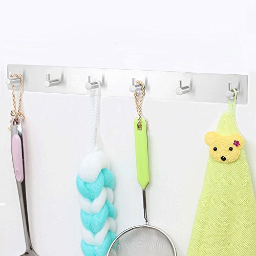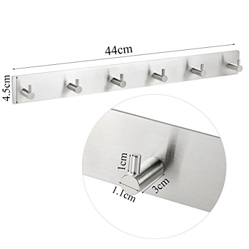 Bosszi sus 304 Coat Rack with 6 Hooks, Wall Hangers for Clothes and Great Wall Hanger for Bedroom, Bathroom, Foyer, Hallway, Brushed Finish … (SELF-adhevise)