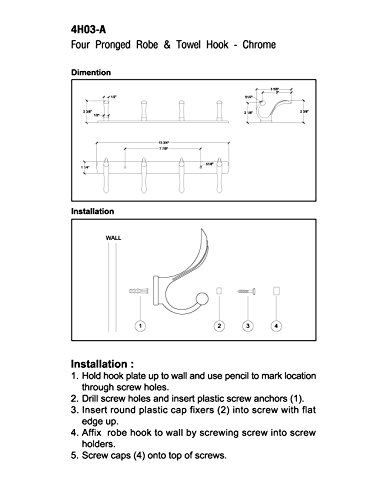 Large Four Pronged Towel & Robe Hook. Use for Coats, Robes, Jackets, Towels, or Clothes Hangers. Size = 13½" Length x 3½" Height x 2½" Depth