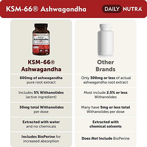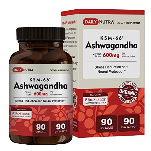 KSM-66 Ashwagandha 600mg - Organic Root Extract - High Potency 5% Withanolides - Health Benefits Include Reduced Stress and Anxiety, Increased Energy...