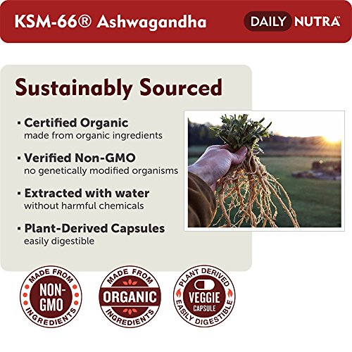 SUSTAINABLY SOURCED: Made from certified organic and non-gmo Ashwagandha root, water extracted without harmful chemicals, plant derived capsules suitable for vegetarians.