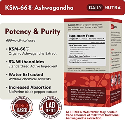 PURE AND POTENT: Each capsule contains a 600mg clinical dose of KSM-66 Ashwagandha, an organic full-spectrum root extract with 5% Withanolides (over 30mg per serving).