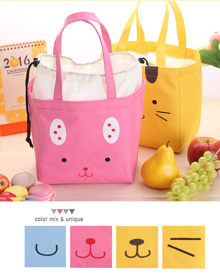 韩国可爱表情版手提大号圆形保温包饭盒袋子便携式加厚便当包