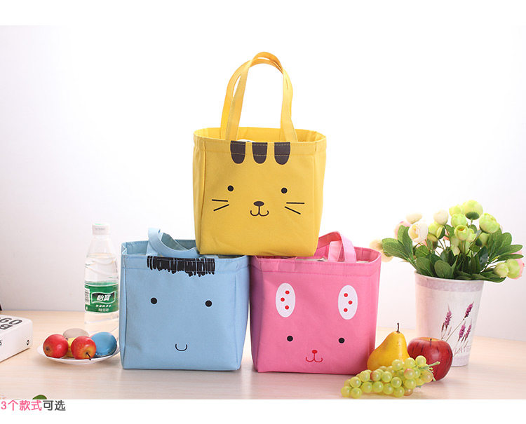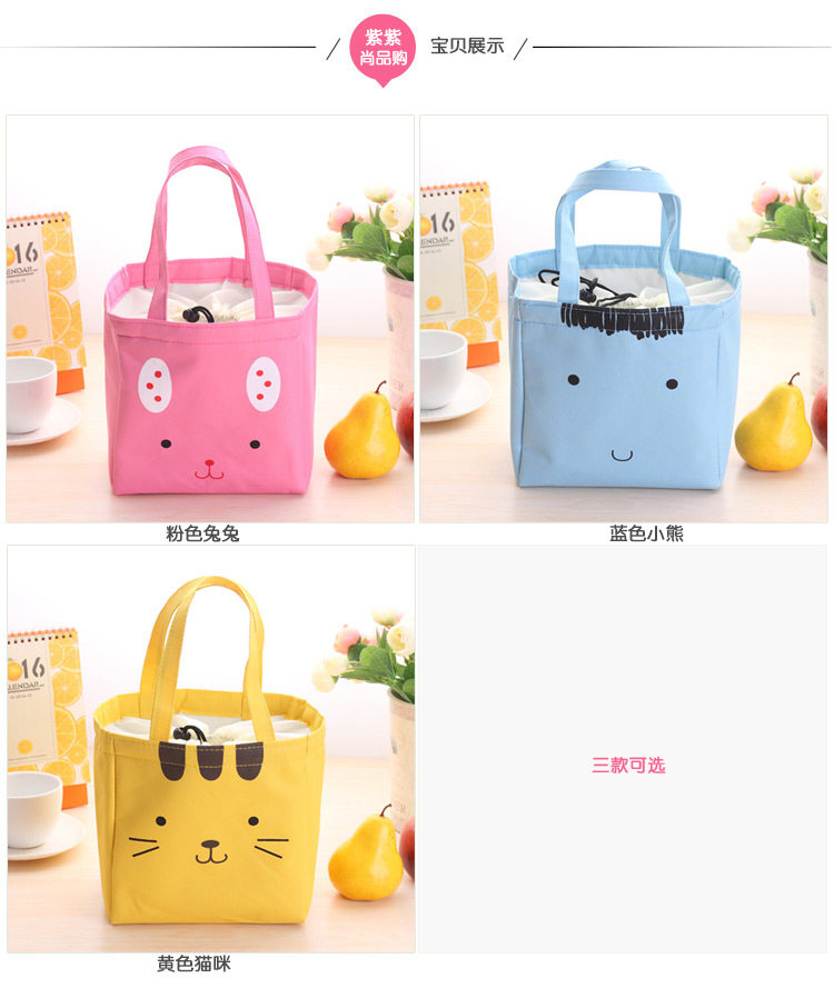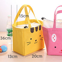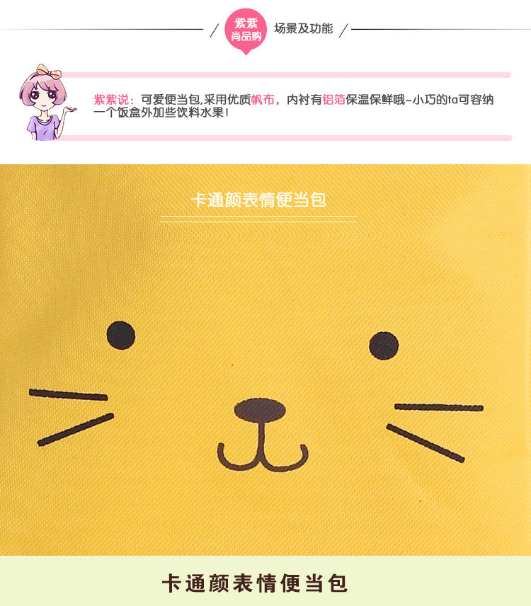 可爱便当包,采用优质帆布,内衬有铝箔保温保鲜哦~小巧的ta可容纳 一个饭盒外加些饮料水果!