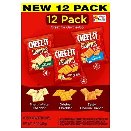 Cheez-It Grooves NEW Variety 12 Pack, 4 Snack Packs each of ORIGINAL CHEDDAR, ZESTY CHEDDAR RANCH, SHARP WHITE CHEDDAR (1 oz packs)