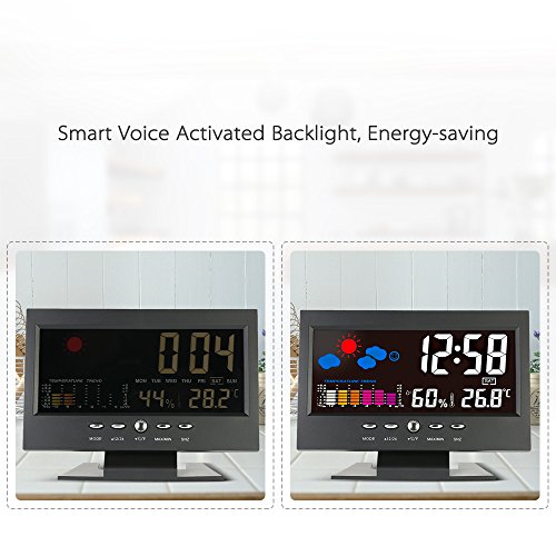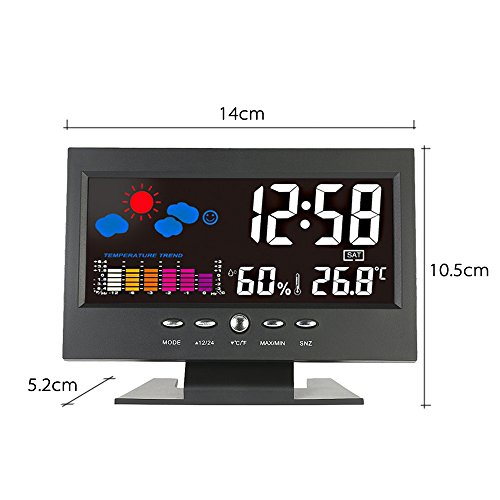 KKmoon °C/°F Multifunctional Indoor Colorful LCD Digital Temperature Humidity Meter Clock Thermometer Hygrometer Comfort Level Weather Forecast Vioce-activated Backlight