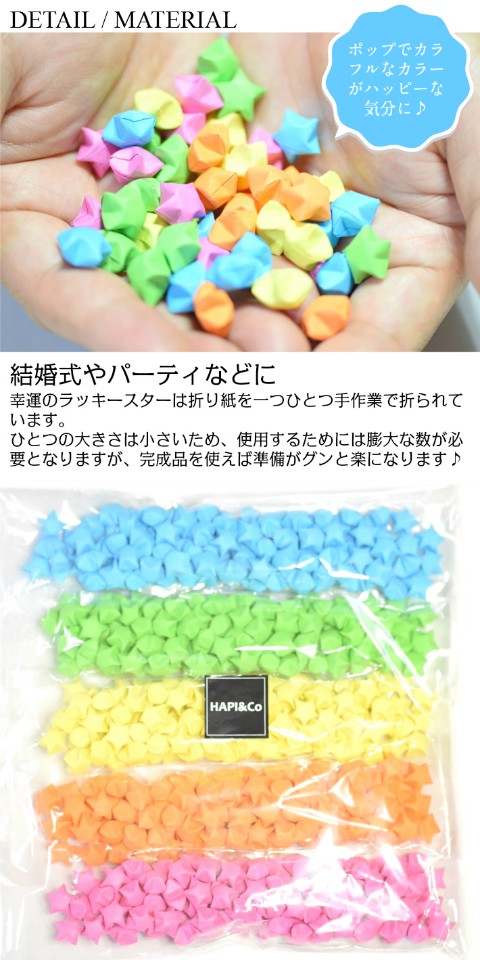 幸運のラッキースターは折り紙を一つひとつ手作業で折られています。