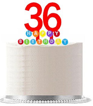 Item#036WCD - Happy 36th Birthday Party Red Cake Topper & Rainbow Candle Stand Elegant Cake Decoration Topper Kit