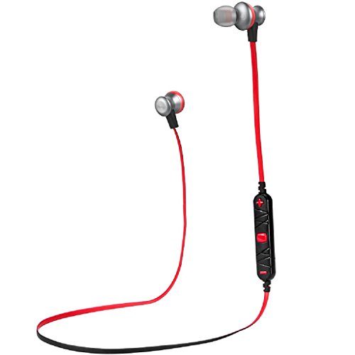 -. Feature : Bluetooth 4.0 technology makes it easy and fast to pair with Bluetooth-enabled-devices. Adopt the advanced technology of multipoint connection, support you to connect with two phones at the same time,Easy to control the music play and answer the phone. / Built-in HD Microphone with CVC6.0 noise cancellation,ensure Hi-Fi Stereo Music Sound and Strong Signal. Let you get high quality and clear voice even in noisy environment like inside a gym and running/cycling on the road. / Ergonomic design provide comfort and also stability so the headphones stay in place no matter the levels of exercise, and it is sweat and water resistance, so you can enjoy your music for long time. / Aluminum alloy material give you a fine metal texture. Reduce the sound refraction, and gives you a smooth listening experience. / Magnet attraction design, hanging like a necklace around your neck, and you can adjust the length of the ropes to your liking.