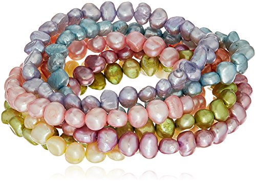 -. Title : Iced Pastel Baroque Shape Dyed Freshwater Cultured Pearl 7 Piece Stretch Bracelet