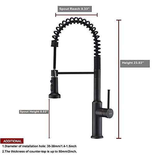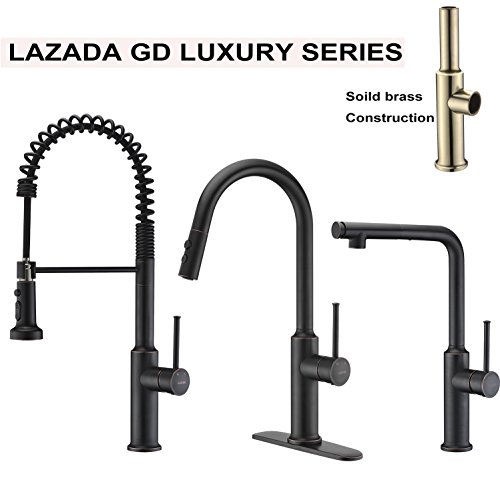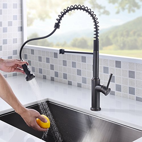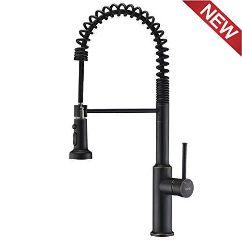 LAZADA Commercial Style Lead Free Spring Kitchen Faucet, Oil Rubbed Bronze Single Handle Pull Out Sprayer Sturdy Kitchen Sink Faucets