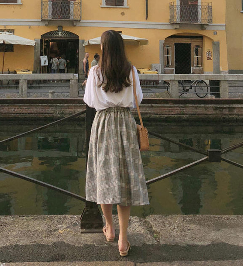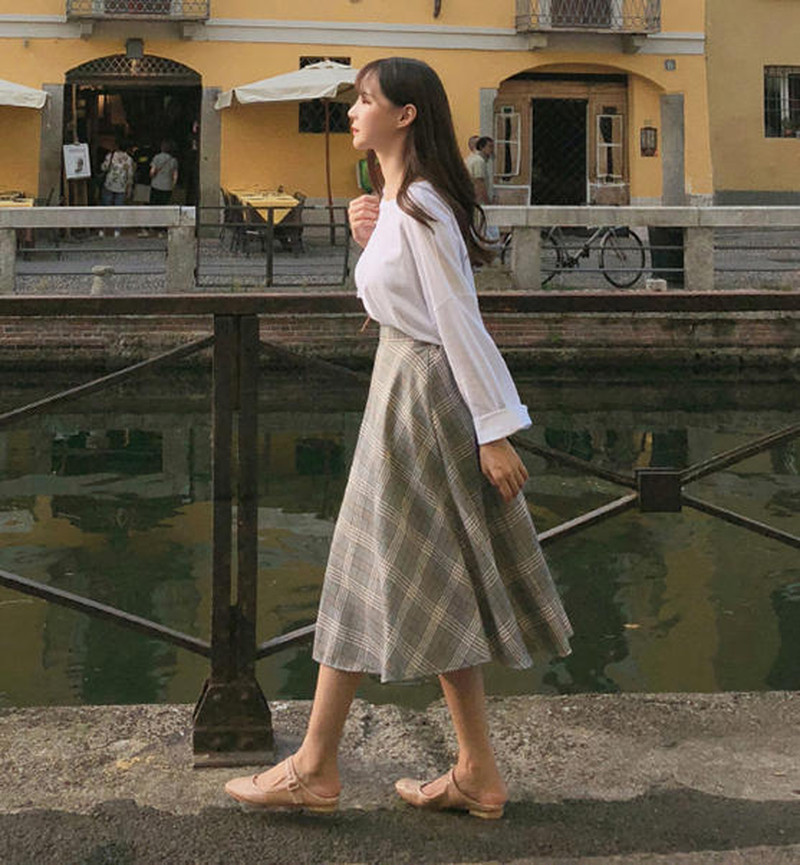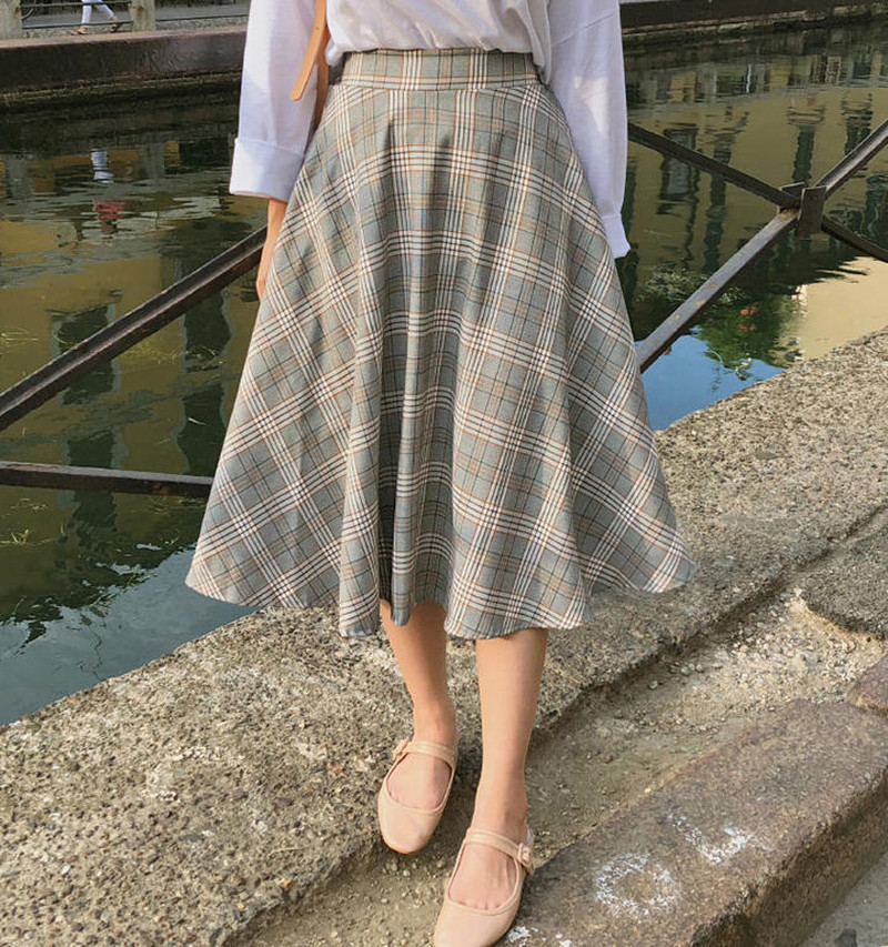 ♢ポイント♢ レトロでクラシックな雰囲気のチェック柄フレアスカートです。 きれいめコーデにも、カジュアルコーデにも◎