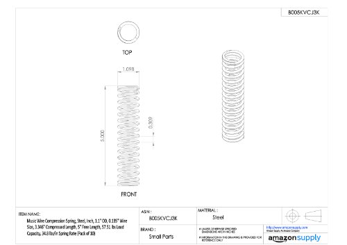 Music Wire Compression Spring, Steel, Inch, 1.1" OD, 0.135" Wire Size, 1.07" Compressed Length, 1.5" Free Length, 57.51 lbs Load Capacity, 133.7 lbs/in Spring Rate (Pack of 10)