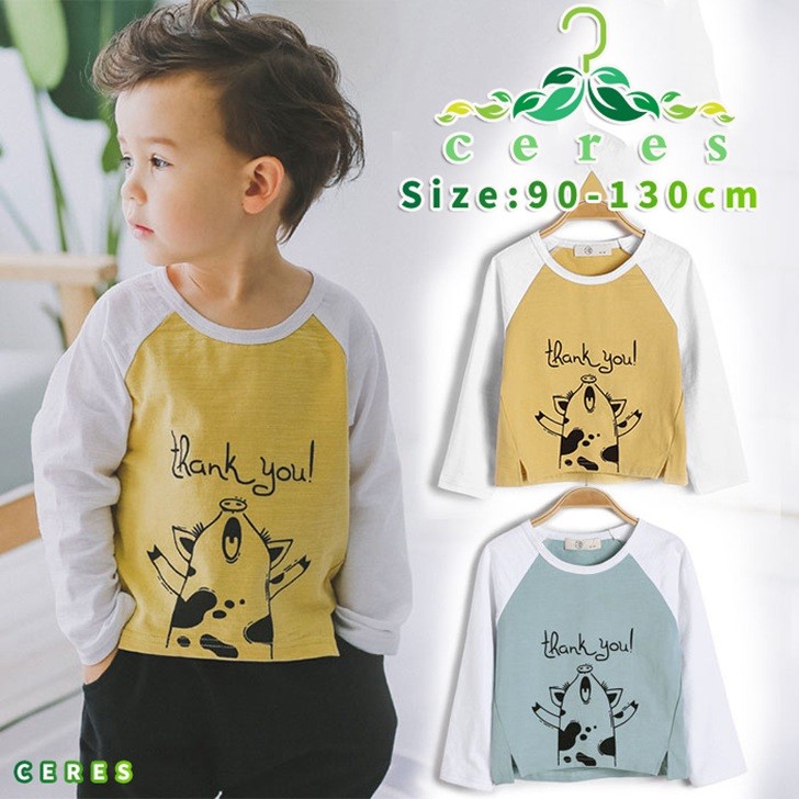 【製品仕様】■商品説明・可愛い子ブタが印象的な一枚。・サイドのスリットで動きやすさUP。・前にくらべて後ろが長い、さりげなくお洒落なデザイン。■カラー:ライトブルー、イエロー■材質:コットン95%、ポリウレタン5%■サイズ(平置き採寸) 90cm: バスト:64cm 総丈:38cm 袖丈:40cm 100cm: バスト:68cm 総丈:41cm 袖丈:43.8cm 110cm: バスト:72cm 総丈:44cm 袖丈:47.6cm 120cm: バスト:76cm 総丈:47cm 袖丈:51.4cm 130cm: バスト:80cm 総丈:50cm 袖丈:55.2cm