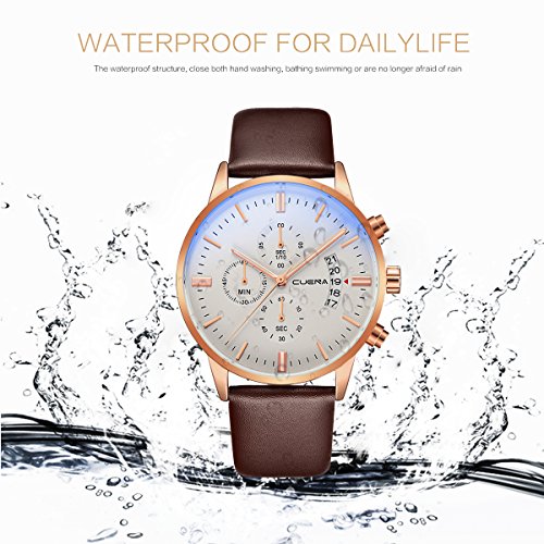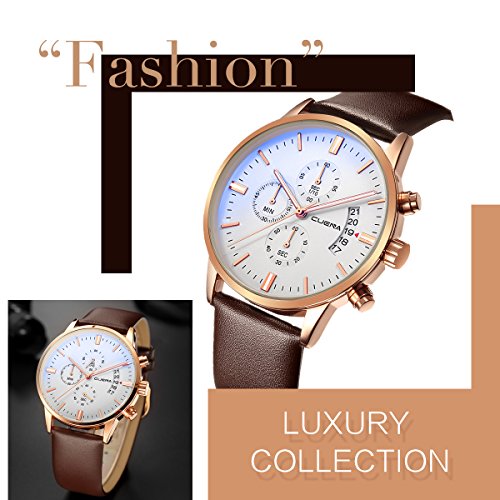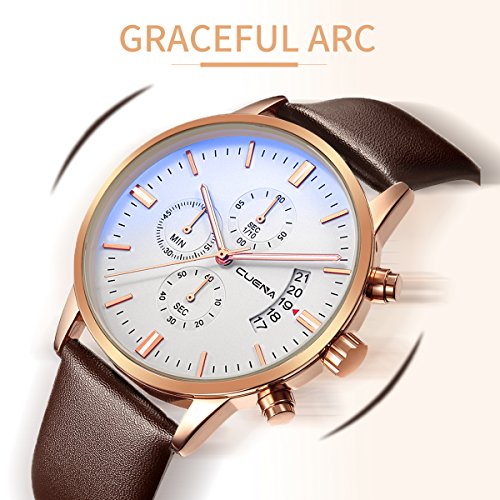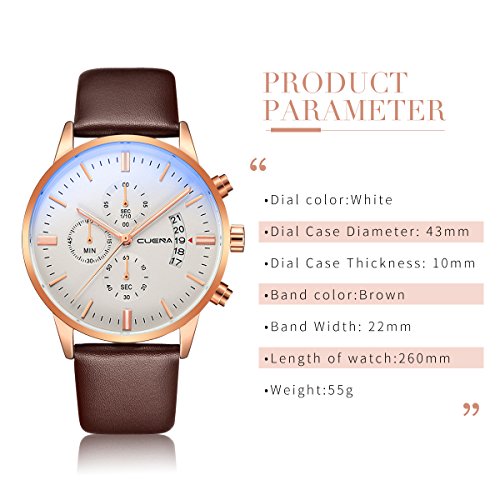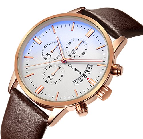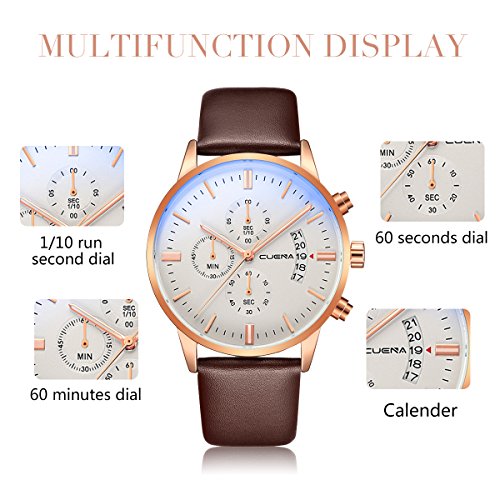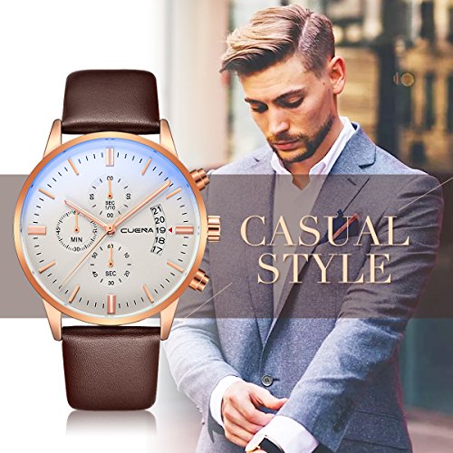 - BUSINESS CASUAL DESIGN: stainless steel case and genuine leather band,Stainless-steel case,unisex size for men, dress/business watch, a great gift for family or friends.