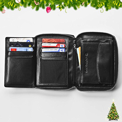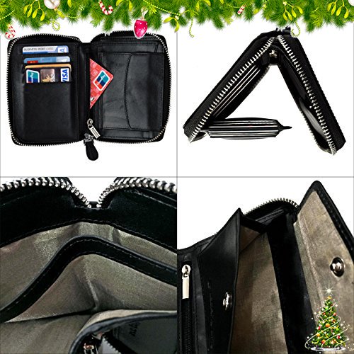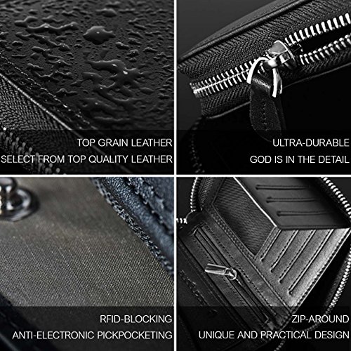 PROTECTS YOU from electronic theft via the use of a high-quality liner inside the backing of the entire wallet, so you do not have to worry. QUALITY MATERIALS with a 100% Authenticity Guarantee that our wallet is made of full-grain leather, the top in the industry (not inexpensive PU leather) so it will last. SPACIOUS INSIDE with 11 credit card slots 1 each identification holder, bill sections, zippered area, coin purse. ZIPPER CLOSURE ensures your information money will not fall out or get lost. 60 DAY RETURN 3 YEAR WARRANTY to make sure our product is unique reliable.