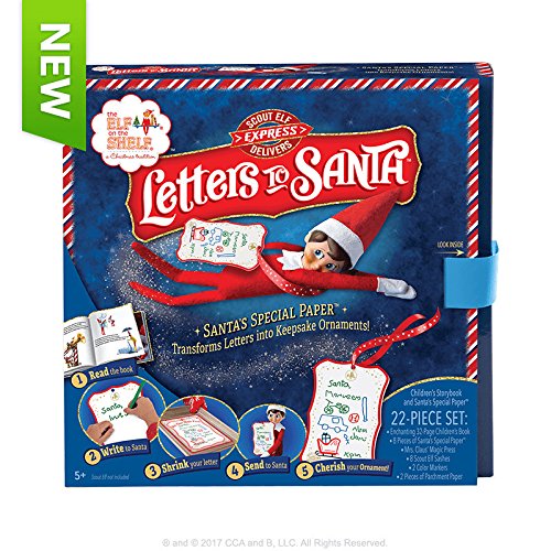 Studio : Elf on the Shelf Publisher : Elf on the Shelf Binding : Toy Product Description 3 years up. The Scout Elf Express delivers letters to Santa on time every time! Write your letters on Santa's special paper and use Mrs. Claus' Magic Press to shrink them down to Elf-size. Leave the letters out for Scout so he can tie them around himself and deliver them at magical speed! When the letters have been seen by Santa, Scout will hang them on the tree. Included: 8 Pieces of Santa's Special Paper, Mrs. Claus' Magic Press, 8 Ribbon sashes, 2 Markers, 2 Sheets of parchment paper, and a Beautifully-illustrated storybook that tells the story of Scout and his Express Delivery service. Scout Elf not included. 0