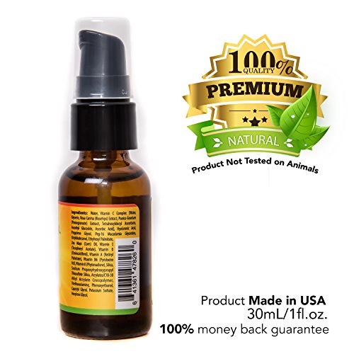 -. Feature : • ALL NATURAL FORMULA - Our product was manufactured right here in the USA! It is Naturally Safe, Paraben Free, and Not Tested On Animals / • IMPROVE THE LOOK AND FEEL OF YOUR SKIN - AV Natural Products are guaranteed to Eliminate Dark Age Spots caused by sun damage. The formula used is a high potency 20% Vitamin C Serum with Hyaluronic Acid which is proven to reduce free radicals on your skin acting as a powerful Anti-Oxidant for your skin / • MAXIMUM AND EFFICIENT ABSORPTION - The potent 20% Vitamin C and Hyaluronic Acid act efficiently and quickly by easily absorbing into your skin / • STIMULATES COLLAGEN & HYDRATES YOUR SKIN - These natural ingredients combine to beautify your skin naturally, and help to reduce wrinkles ultimately giving your skin a younger looking, fresh, and silky smooth appearance