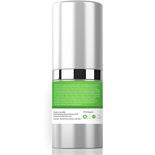 -. Feature : FLAWLESS RADIANCE - This advanced eye cream absorbs quickly and dries instantly to provide tired, puffy eyes with smooth, rejuvenated skin free of dark circles or bags. / SAY GOODBYE TO BLEMISHES - Infused with powerful antioxidants, our eye serum targets puffiness, swollen eyes, fine lines, and wrinkles for clearer, healthier skin. / SOOTHING HYDRATION - Moisturize and hydrate skin with natural ingredients like Hyaluronic Acid, Matrixyl 3000, Cucumber Hydrosol and an organic herbal infusion of plant stem cells. / NATURAL, ORGANIC INGREDIENTS - Vegan friendly and cruelty free, our formula contains no parabens, sulfates, gluten or alcohol for true purity and quality you can trust. / NIGHT AND DAY SUPPORT - Petunia Skincare eye serum can be applied in the morning or before bed and works to help revitalize your skin all day, every day.