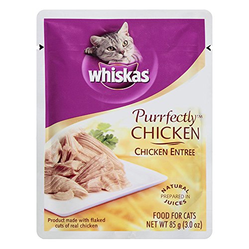 Contains (24) 3-oz. pouches of WHISKAS PURRFECTLY Chicken Wet Cat Food Chicken Entrée