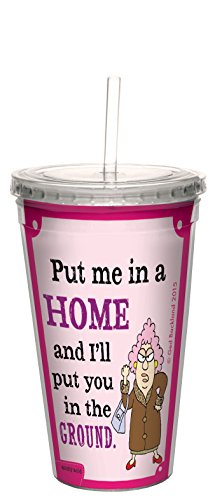 Tree-Free Greetings 16-Ounce Double-Walled Cool Cup with Reusable Straw, Aunty Acid Old Age Home (CC98526)