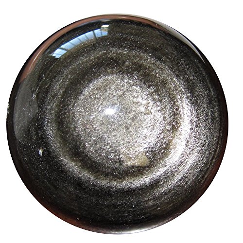 Your sphere is made from obsidian, which is volcanic glass. It appears black in normal lighting, with some white dimples and snowflake markings natural to obsidian. When placed in direct sunlight or very bright lighting, the sphere reveals wonderful silver sheen sparkles, with eye formations on both sides. One of a kind protective sphere hand picked by Satin Crystals for you. Receive this exact stone pictured when you order from Satin Crystals.