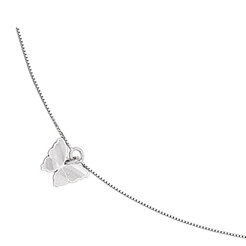 -. Title : Leslie's Sterling Silver Polished & Textured Butterfly Anklet 9 Inch w/1in ext