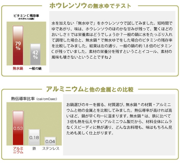 余分に水を加えず、加熱時間が短くすむので、デリケートなビタミン、ミネラル等の損失が少なくて済みます。