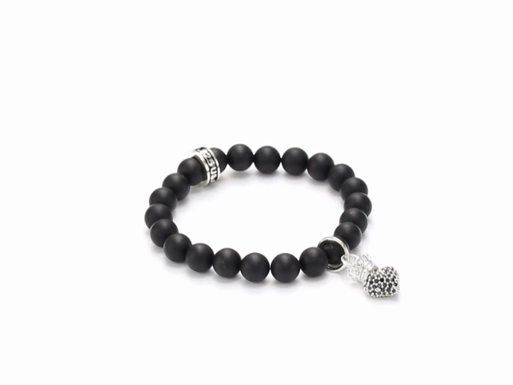 King Baby Black Onyx Bead and Black Cubic Zirconia Crowned-Heart Bracelet