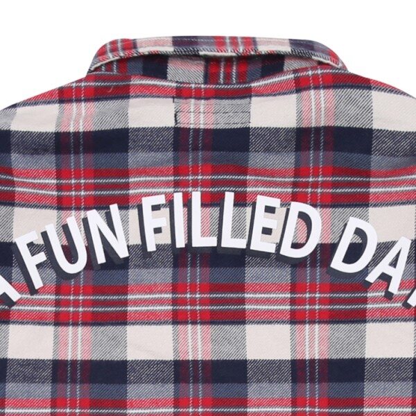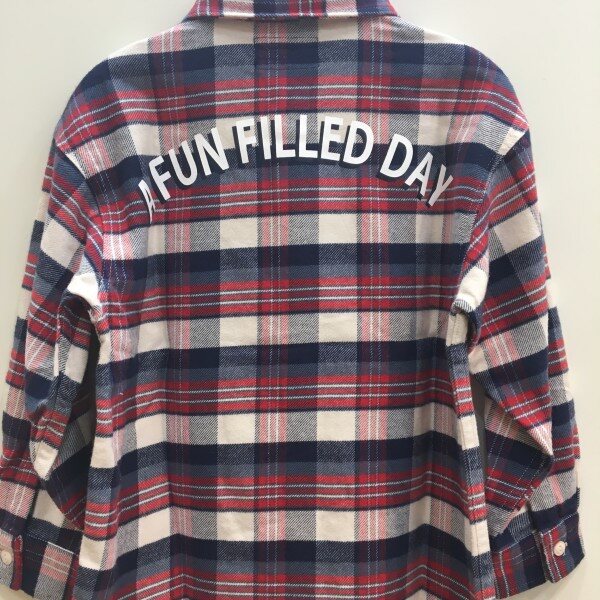 뒤쪽에 레터링이 포인트로 들어간 체크 셔츠 상품입니다.^^