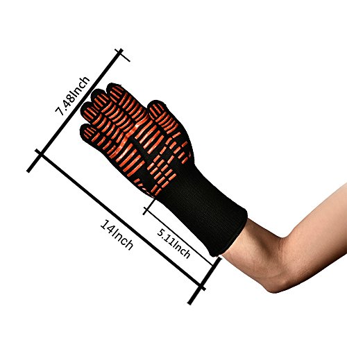 TTLIFE BBQ Gloves - Grilling Cooking Gloves - 932°F Extreme Heat Resistant Gloves - 1 Pair (Long with Narrow Thumb) - 14" Long - For Extra Forearm Protection