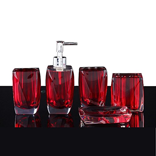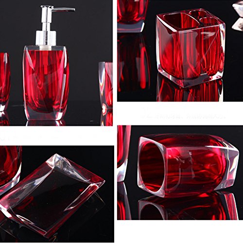 Bathroom Accessory Set Resin Soap Dish, Soap Dispenser, Toothbrush Holder & Tumbler (No tray, Red)