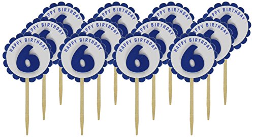 All About Details 6th Birthday Shimmer Blue Cupcake Toppers, Set of 12