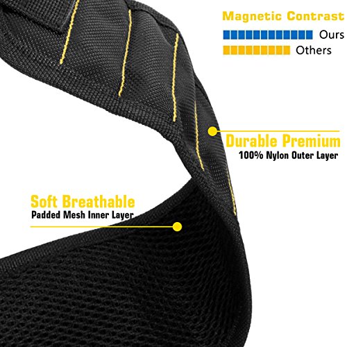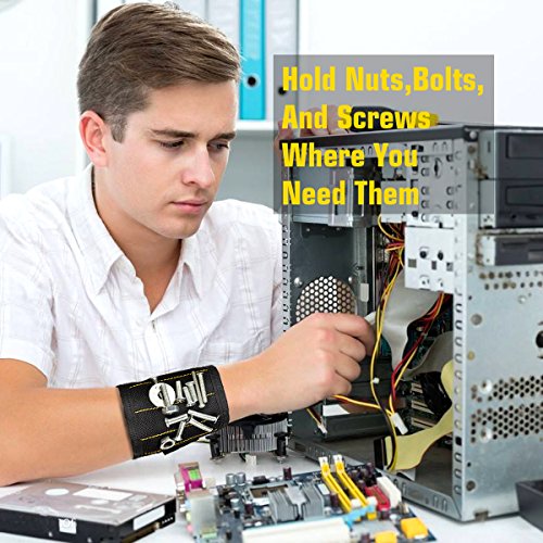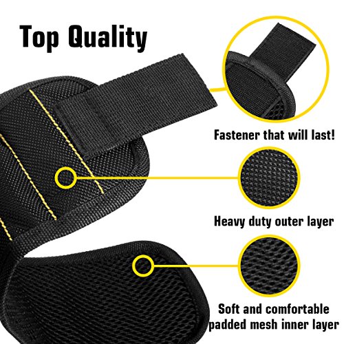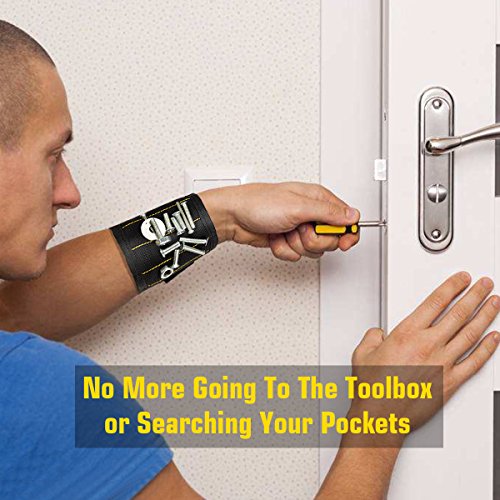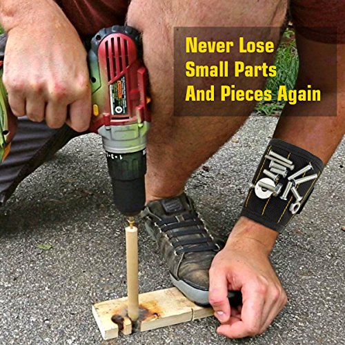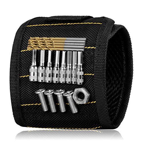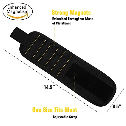 - MAGNETIC ENHANCEMENT: Enhanced strong magnets embedded in each wristband surround almost entire wrist for holding screws, nails, bolts, washers, drill bits.