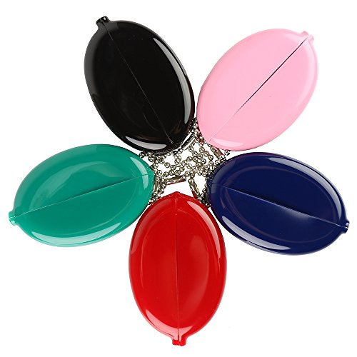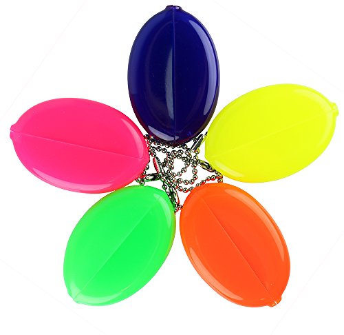 Set of 5 - Plastic Squeeze Coin Wallet, Change Pouch, Money Holder Purse with Keychain Ring, Made in USA (Neon Colors)