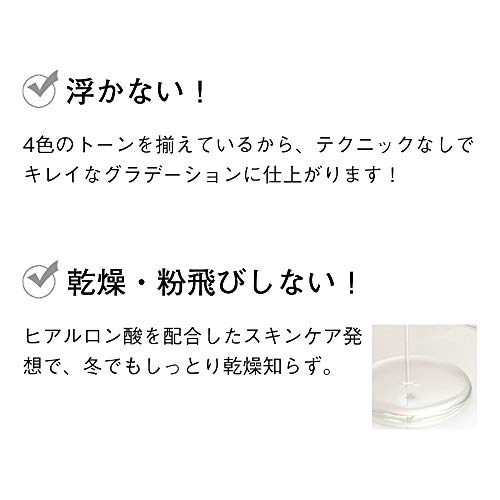 4色のトーンをそろえているから、テクニック要らず。“なんとなく"順に重ねるだけで、誰でも簡単にキレイな最旬グラデーションが作れます。