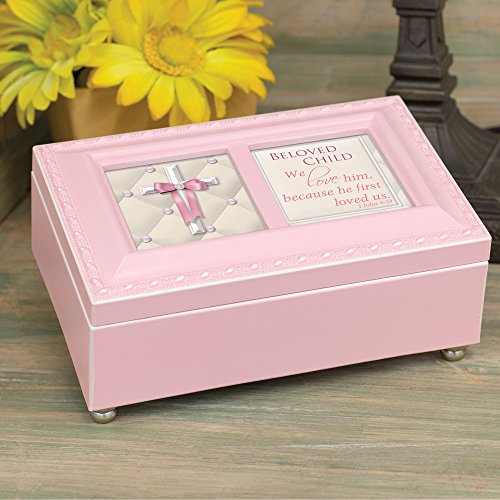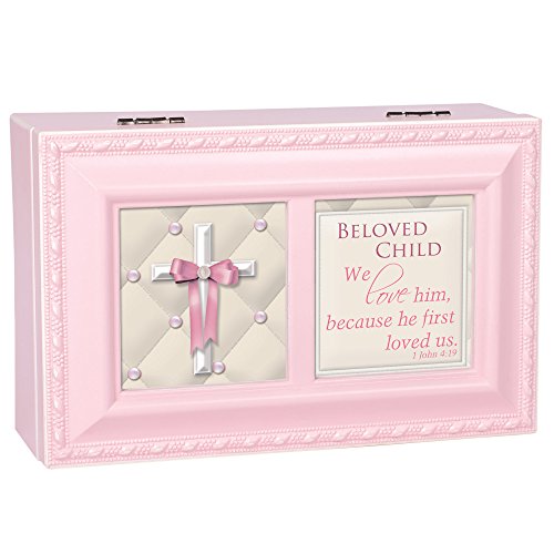 Beloved Child Girl Distressed Pink Inspirational Cottage Garden Petite Music Box Plays Jesus Loves Me